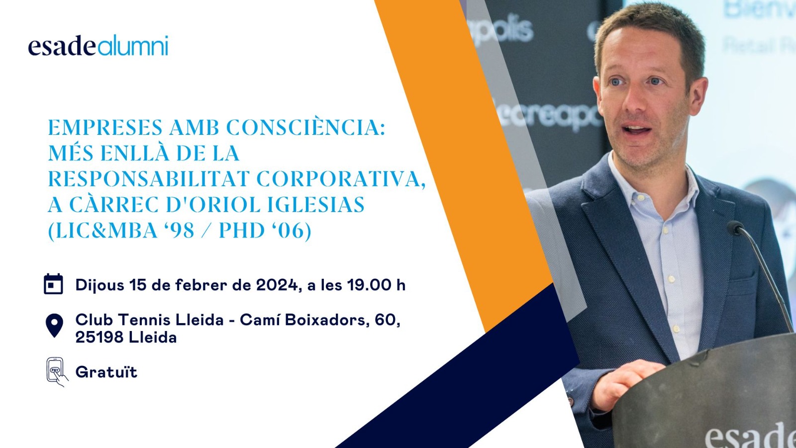 Acte d’Esade Alumni Lleida el dijous 15 al club amb Oriol Iglesias i ‘Empreses amb consciència: més enllà de la responsabilitat corporativa’