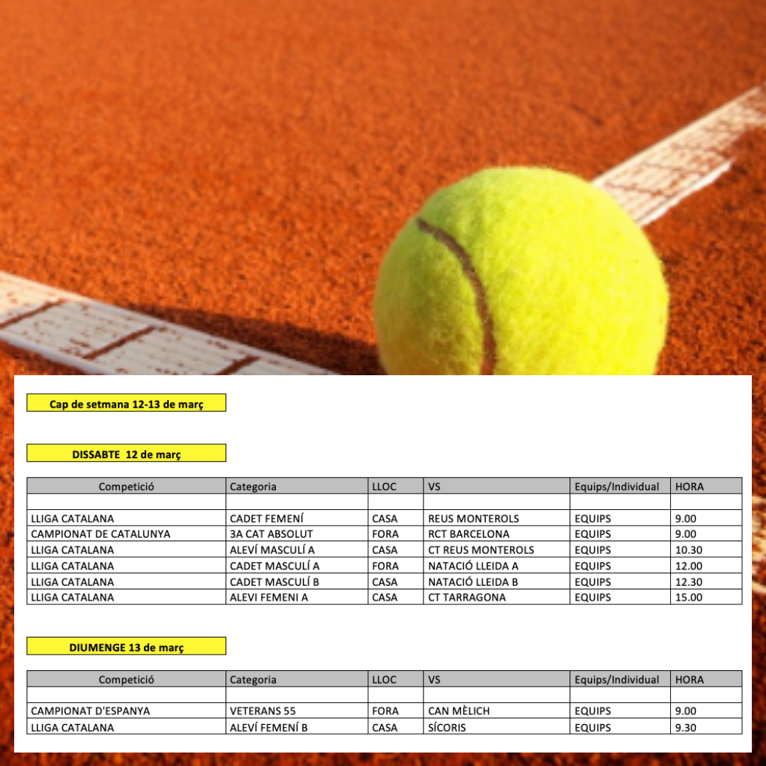 Quadre de competicions de tennis del cap de setmana dels dies 12 i 13 de març