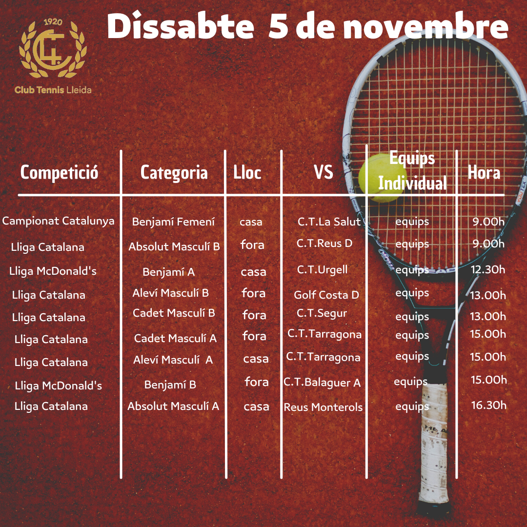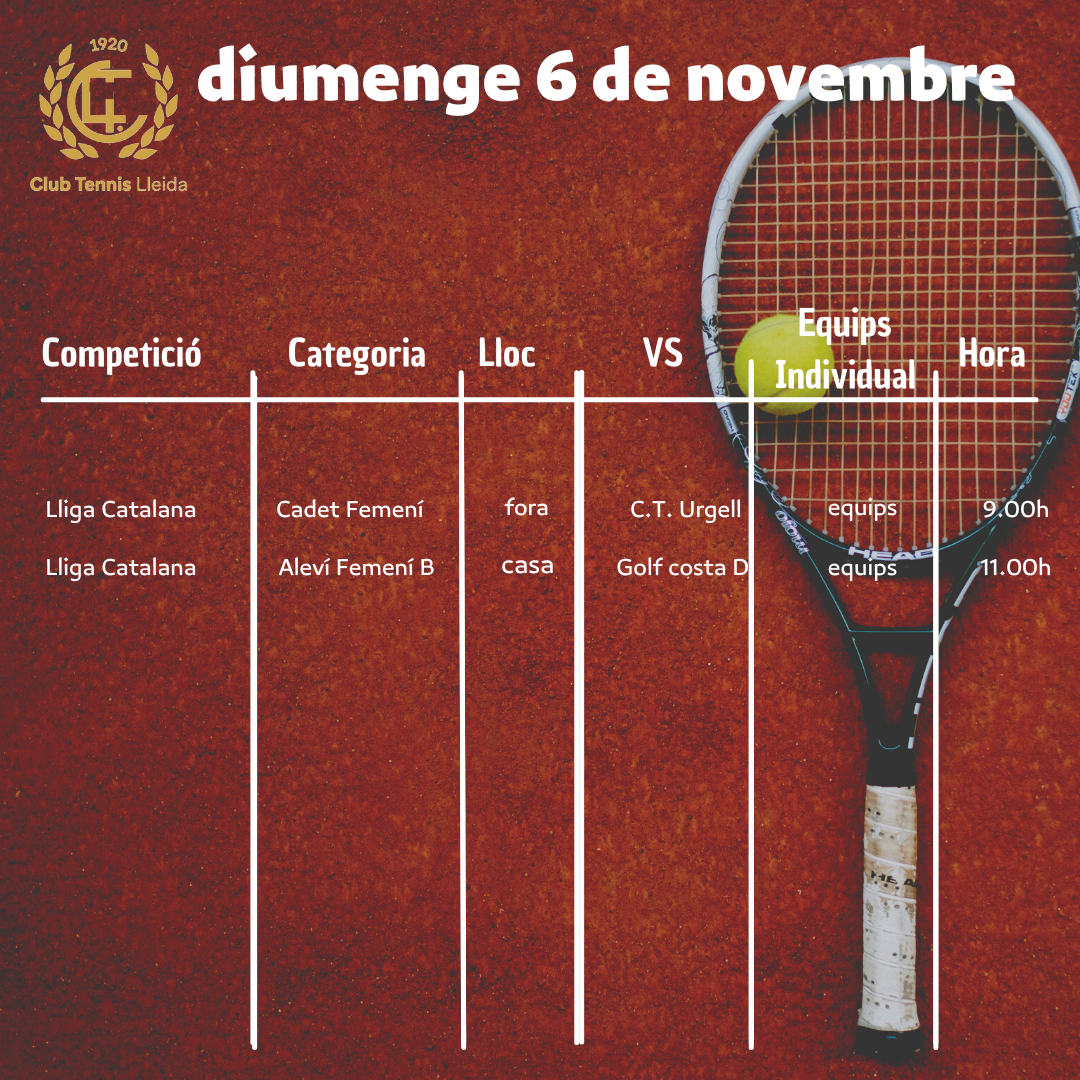 Quadre de competicions de tennis del cap de setmana dels dies 5 i 6 de novembre
